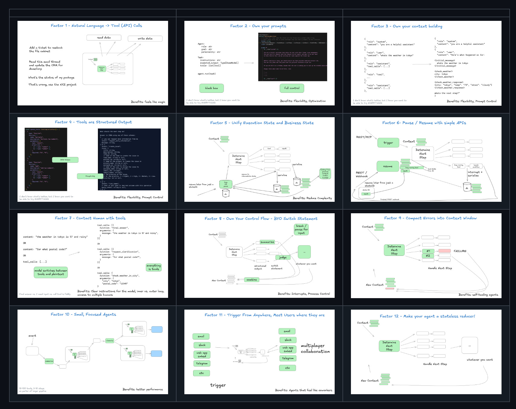 Drawing from patterns seen across real-world agent deployments, this guide outlines twelve core principles—like owning your prompts and context window, treating tools as structured outputs, and unifying execution and business state—to help developers move beyond brittle prototypes. Instead of relying on heavy frameworks, it emphasizes modular, composable practices that integrate well into existing systems.
