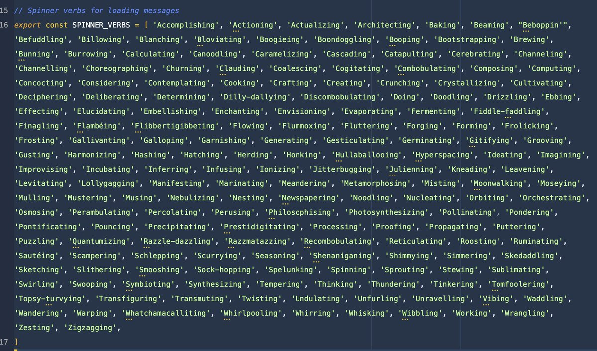 The leak also surfaced things that are not actionable but say a lot about how the product is built. Wes Bos found 187 hardcoded spinner verbs, the loading messages you see while Claude thinks.